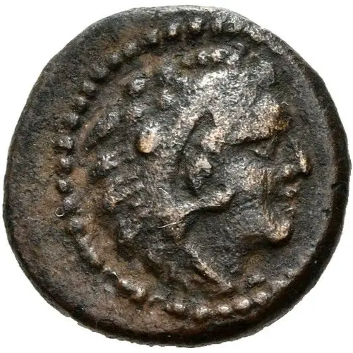 | Aversbeschreibung | Head of Heracles with lion skin to the right. |