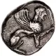 | توضیحات روی سکه | Seated sphinx facing towards right. It is raising its right foreleg on an inversed lotus flower. |