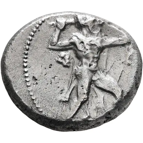 | Opis awersu | Heracles advancing right, wearing lion`s skin and holding in right hand club and bow in left. |