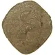 Seated sphinx right, with curled wing, left forefoot raised; behind, circle of dots with pellet in center.