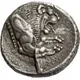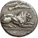 | Descrição do reverso | Forepart of lion facing right with its mouth open. All within incuse square |