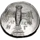 Popis rubu Owl standing facing on shield, with wings spread; grain ear to outer left, sword in sheath to outer right, AP–IΣ and H–Γ across inner field, ΠEIPA in exergue.