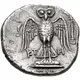 | Описание реверса | Owl standing facing on shield, with wings spread; hippocamp to outer left, sword in sheath to outer right, KT-H across inner field, ΠEIPA in exergue. |