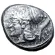 Reversbeschreibung Helmeted head of Athena facing in dotted square within incuse square.