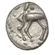 Description du revers Ball-legged horse, standing left, beaded mane; above and in front, globule.