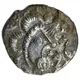 | Descripción del anverso | Moon head right, three ridged crescents for hair, pellet hairline, large sunburst on chin, stalk lips. Wing motif in front. |