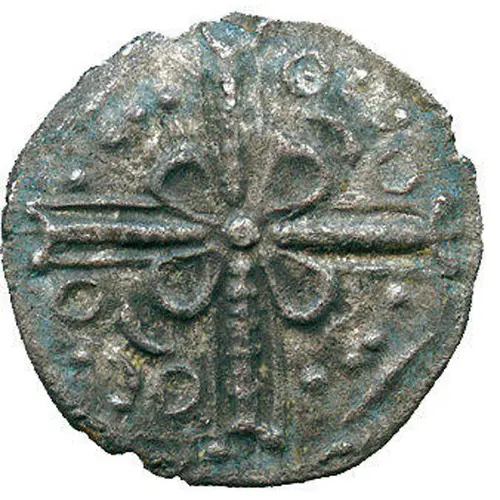 | Obverse description | Wreath (beaded cross) motif with central four-petalled flower. Pellets and rings in angles. |