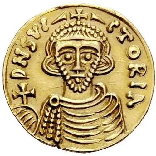| Descrizione del dritto | Crowned, draped, and bearded bust holding cross and surrounded by legend. |
