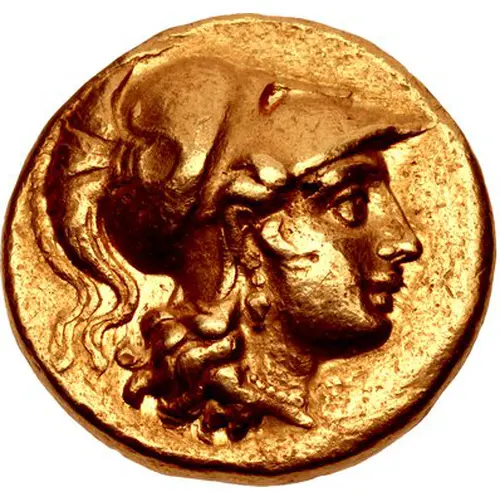 | Descrição do anverso | Head of Athena right, wearing crested Attic helmet decorated with a serpent |