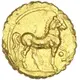 | Reverse description | Horse standing right, pellet beneath horse`s raised left foreleg. |