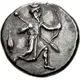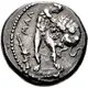 | Aversbeschreibung | Persian king, wearing kidaris and kandys, in kneeling-running stance right, holding spear in right hand, bow in left; barley grain to left |