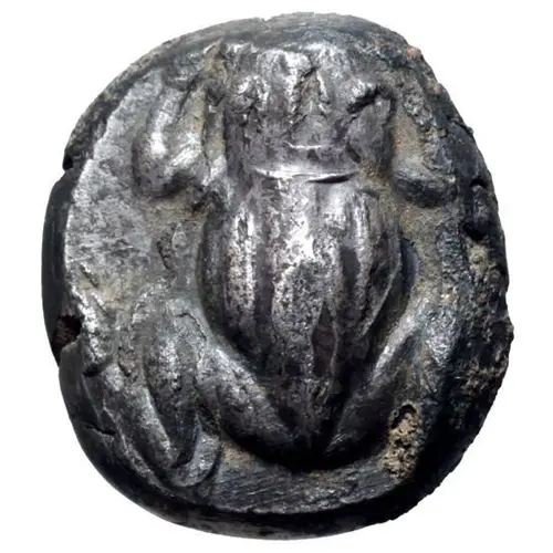 | توضیحات پشت سکه | Shallow quadripartite incuse square, each quadrant containing a dolphin; uncertain retrograde legend: Σ-E-?-↓ around. |