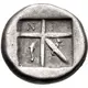 | Mô tả mặt sau | Quadripartite incuse pattern. Letter N in upper left part, letter I in upper right part and a dolphin in lower left part. |