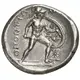 | Description du revers | Ajax, nude but for Corinthian helmet, advancing right, holding short sword in his right hand and, in his left, a shield ornamented with a griffin and a palmette on its interior. Under him and on the left, eight-pointed star and a broken spear |
