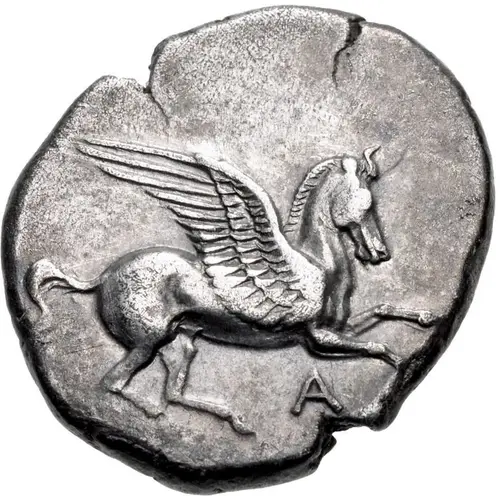 Popis rubu Head of Athena left, wearing Corinthan helmet with neck guard; cicada to right.