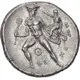 | Reverse description | Hermes, nude but for his petasos and for a cloak over his shoulders, partially facing and moving to the left and holding a kerykeion in his right hand. His head is turned back to the right to gaze at the infant Arkas, whom he holds on his left arm with his left hand and who raises his right hand towards Hermes’ face. Between Hermes’ legs, the letter Θ |