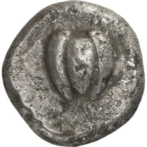 | Opis rewersu | Triskeles around a large central pellet, all within a dotted circle within a shallow incuse circle. |