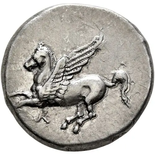 | Mô tả mặt trước | Pegasos flying left; below, Λ. |