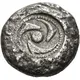 | Description du revers | Three dolphins swimming around a large central pellet, all within a dotted circle within a shallow incuse circle. |