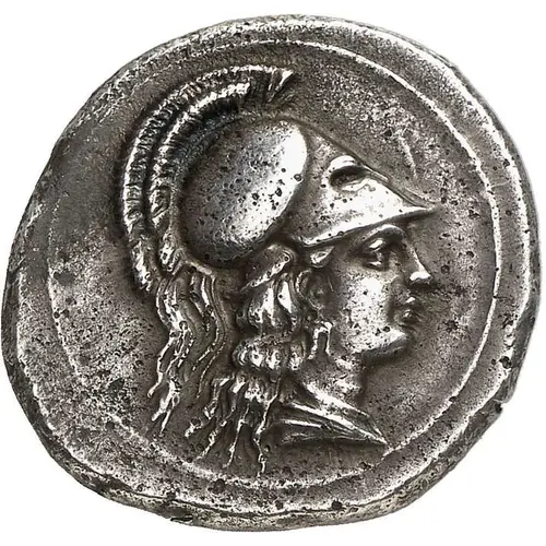 | Obverse description | Head of Athena facing to right, wearing crested Corinthian helmet. |