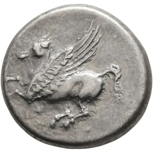 | Mô tả mặt trước | Pegasos flying left; below, Θ. |