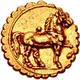 | Descrição do reverso | Horse standing right, with far foreleg raised; pellet above. |