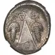 | توضیحات پشت سکه | Triangular baetyl flanked by two bunches of grapes hanging from tendrils, inverted delta Δ (K in Carian) above to left; all within incuse circle. |