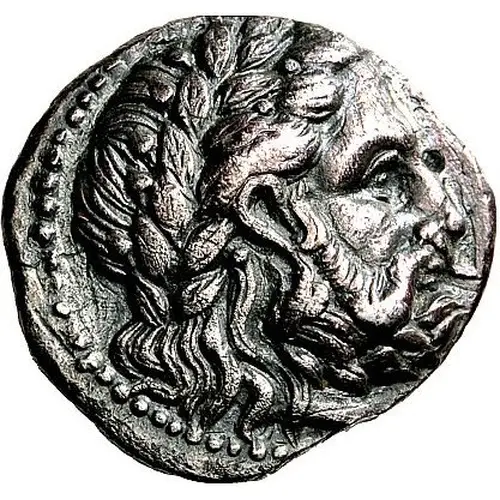 | Description de l’avers | Laureate head of Zeus to right, his hair and beard abundant and curly |