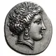 | Obverse description | Head of Demeter to right, wearing grain wreath, elaborate disc and crescent earring with pendants, and pearl necklace |