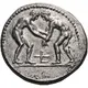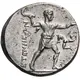 | Описание реверса | Beardless male figure advancing right, left hand extended, holding crooked knife in right; triskeles before. |