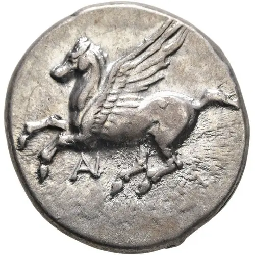 | Ön yüz açıklaması | Pegasos flying left; below, AN monogram. |