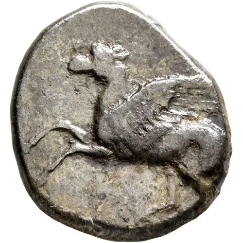 裏面の説明 Head of Athena to right, wearing Corinthian helmet; behind neck guard, obelisk.