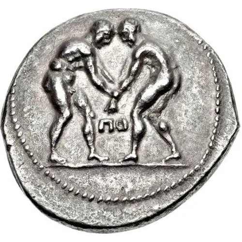 | Aversbeschreibung | Two wrestlers grappling; ΠO between. |