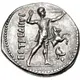 | Reversbeschreibung | Slinger in throwing stance right; EΣTFEΔIIYΣ to left; to right, forepart of horse right above Phrygian helmet right; all within dotted circular border. |