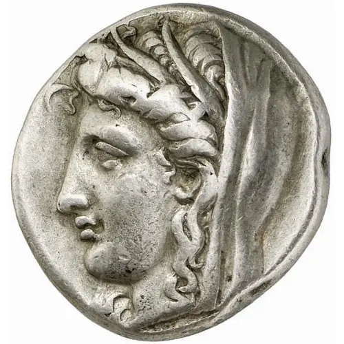 | Obverse description | Veiled head of Demeter to left, wearing wreath of grain leaves. |