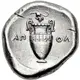 | Reversbeschreibung | Amphora; grape bunch on vine above, magistrate name across field; all within incuse concave circle. |
