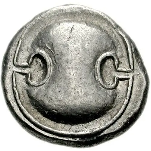 | Arka yüz açıklaması | Amphora; club left above, magistrate name in two lines across field, grape bunch to lower right; all within incuse concave circle. |