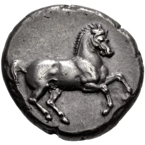 裏面の説明 Grape arbor in linear square; EΠI ΦIΛ-ONI-KOY around; all within shallow incuse square.