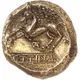 | توضیحات پشت سکه | Horse leaping left, V pointed and surrounded by a beaded cord above the back; a ringlet pointed and surrounded by a beaded cord between the legs. |