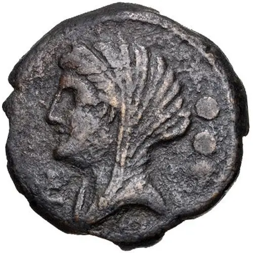 | Popis líce | Veiled head of Hera left; three pellets behind. |