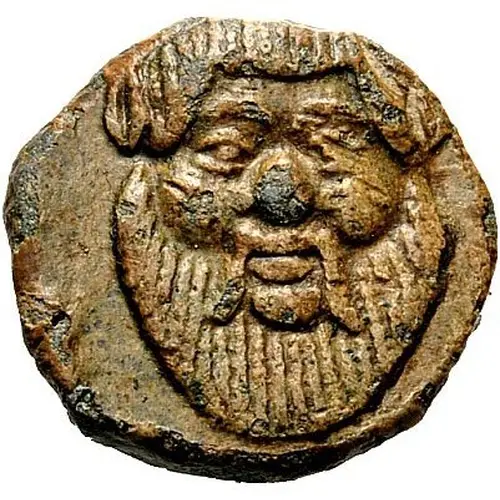 | توضیحات روی سکه | Head of a bearded Satyr facing, with animal ears |