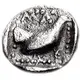 | Reverse description | Cock (or swan?) standing right within pelleted border in incuse square |