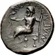 | Reverse description | Asklepios seated left on throne, holding staff in his left hand and extending phiale with his right hand to feed snake coiled before him |