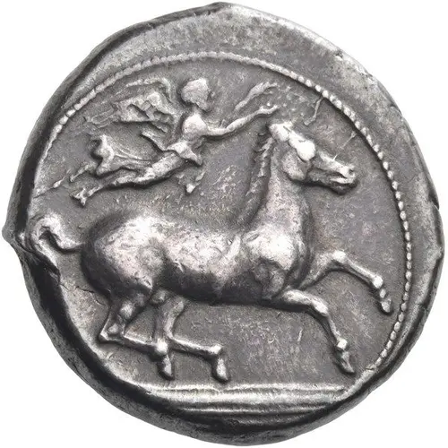 | توضیحات روی سکه | Horse galloping right. Above, Nike flying right, crowning horse. |