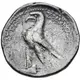 توضیحات پشت سکه Eagle standing left, right leg on prow; palm frond behind, date left