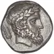 Reverse description Head of Zeus Ammon-right, corn ear behind.