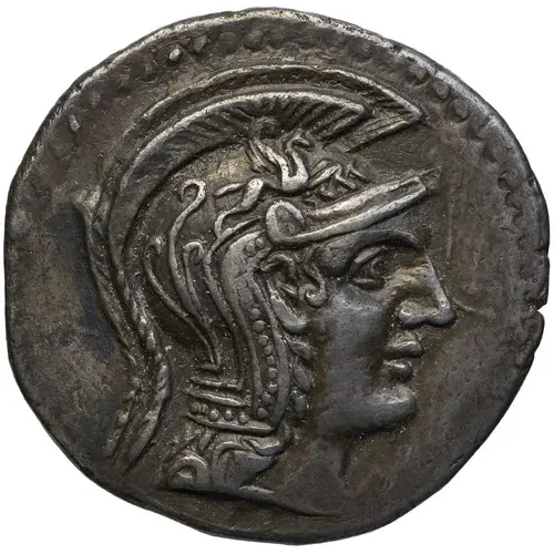 | Opis awersu | Head of Athena right, wearing triple-crested Attic helmet. |