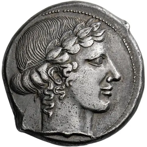 | 裏面の説明 | Lion`s head to right, with jaws open and tongue protruding; around, four barley grains. |