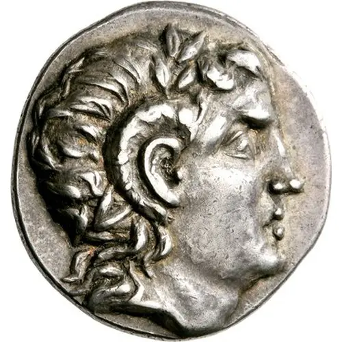| Description de l’avers | Laureate head of Apollo Karneios facing right with ram’s horn over his ear |