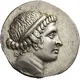 | Description de l’avers | Head of the nymph Cyme right, hair bound with taenia. |